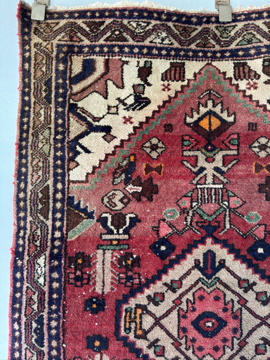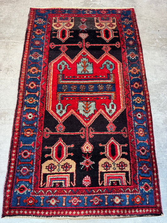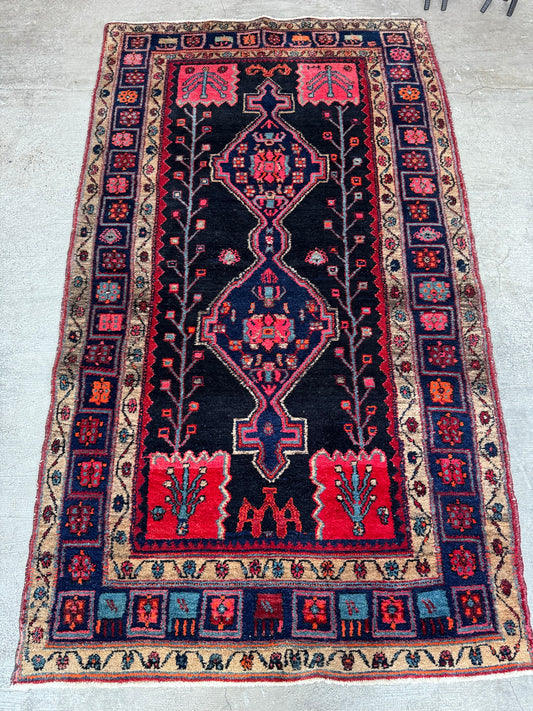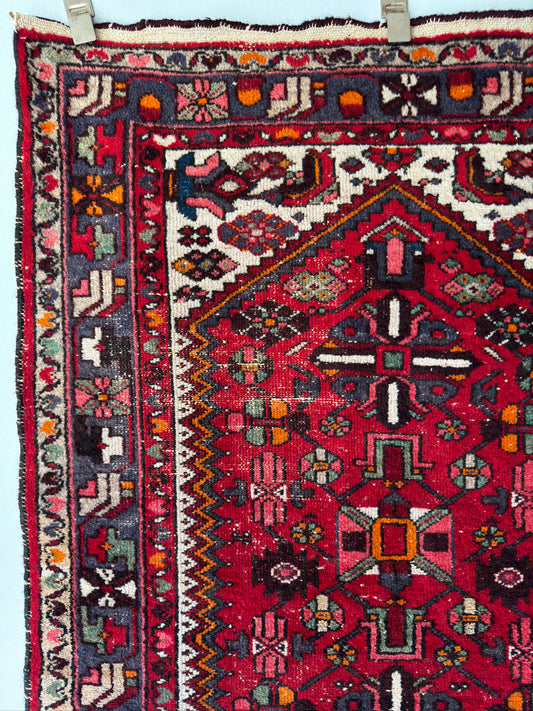 Handmade Persian Hamadan Rug 5 x 3.3 ft
