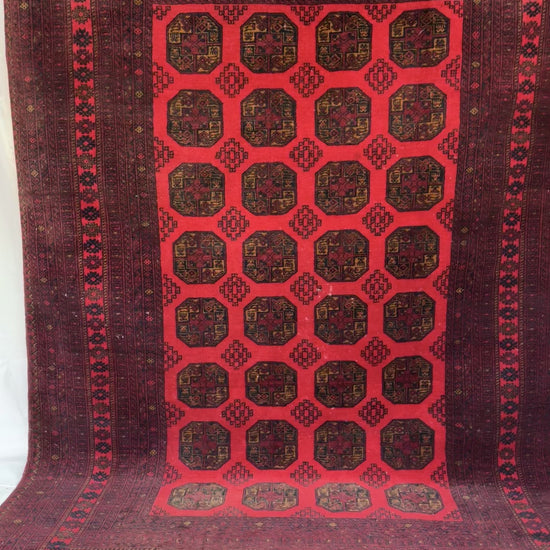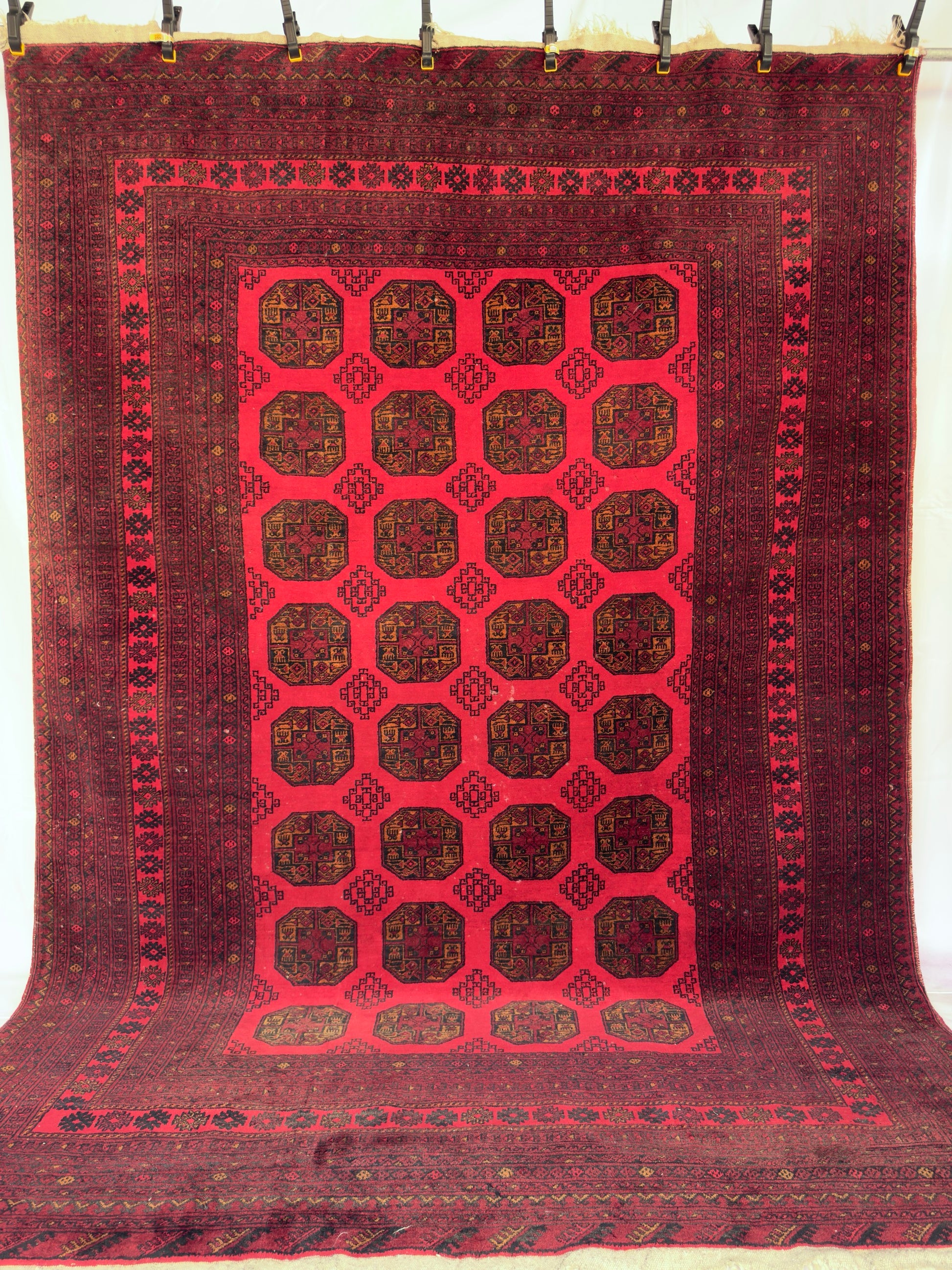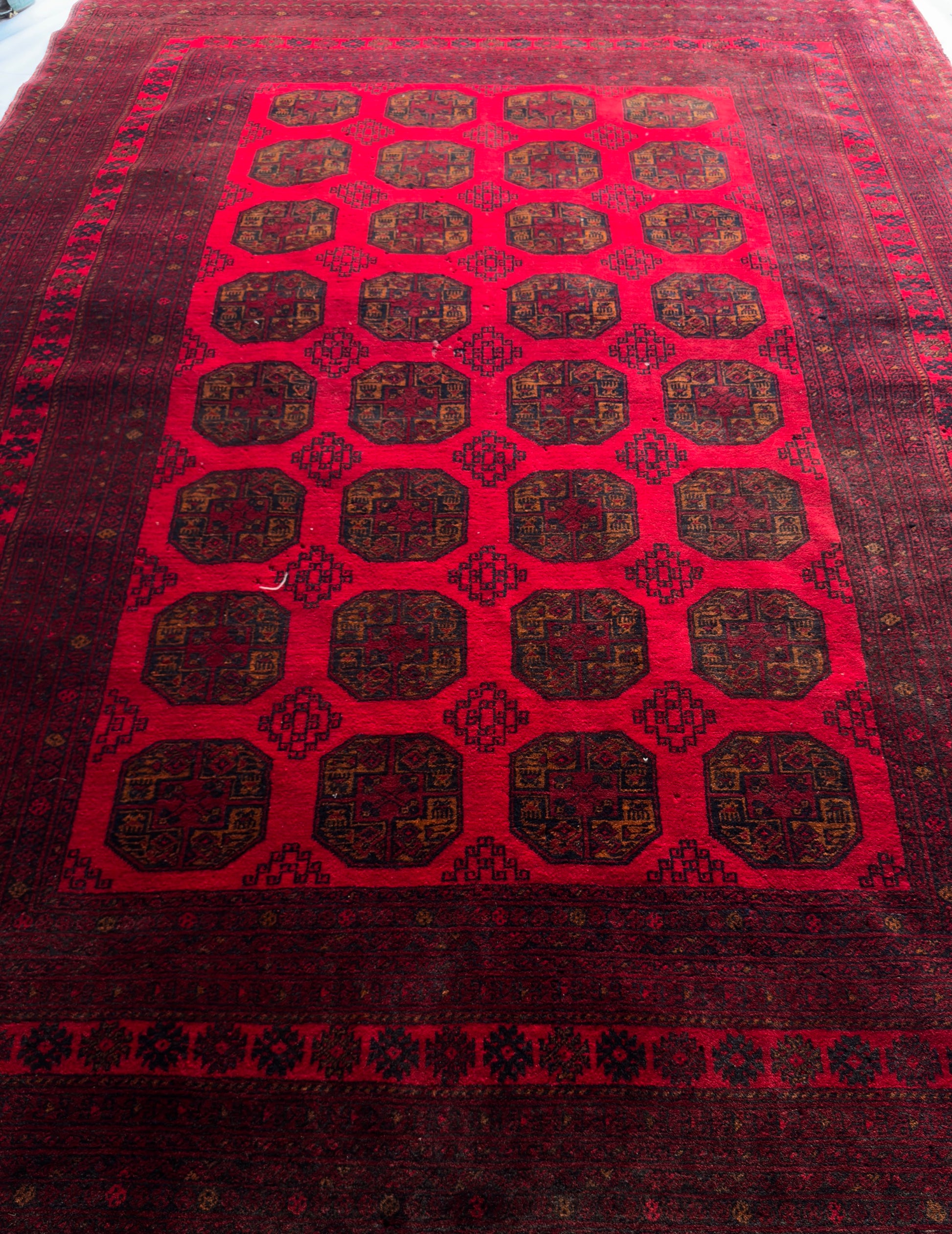 Ersari rugs are sturdy and robust, suited for places with heavy foot traffic. Priced lower than usual to account for the small wears but overall, a great vintage piece to add some color and functional use to your space.