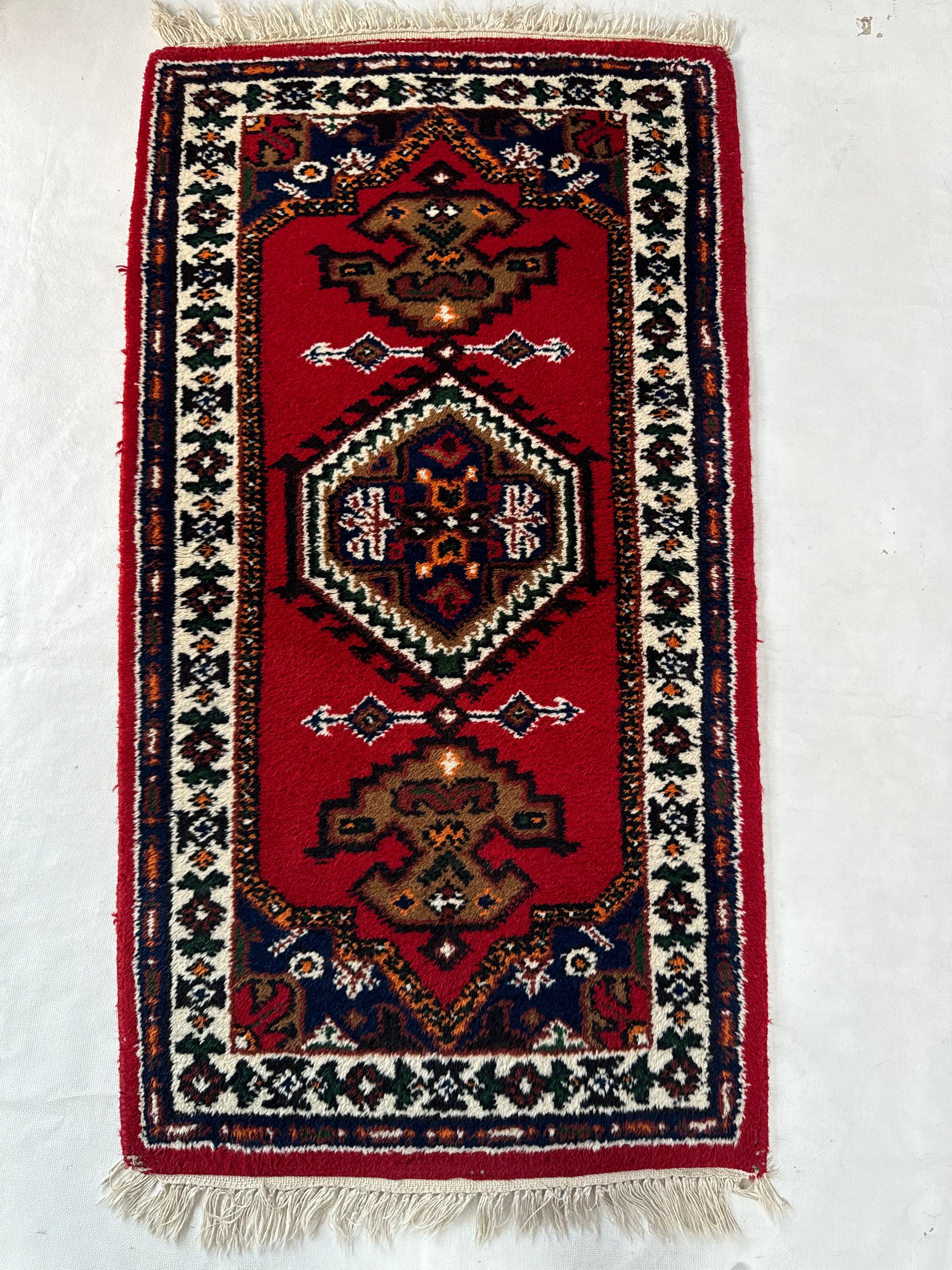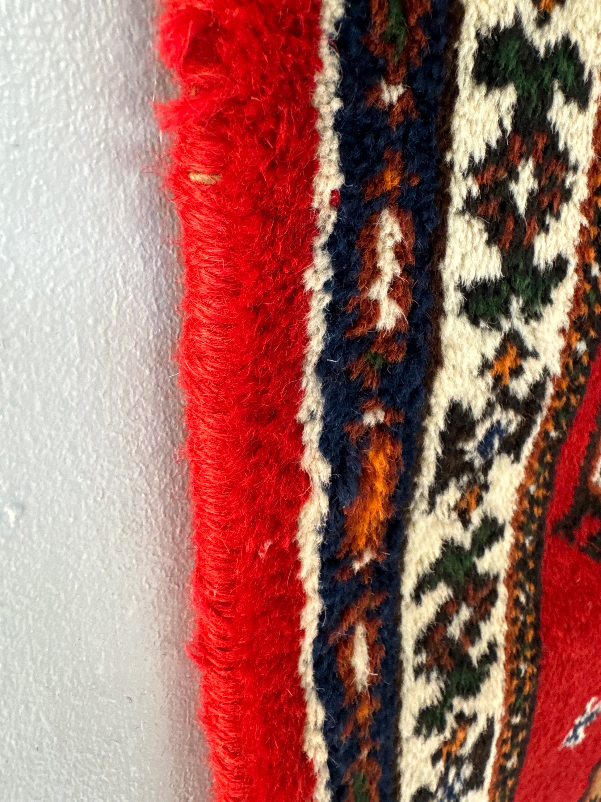 In very good vintage condition. Thick, soft wool pile in vibrant red.