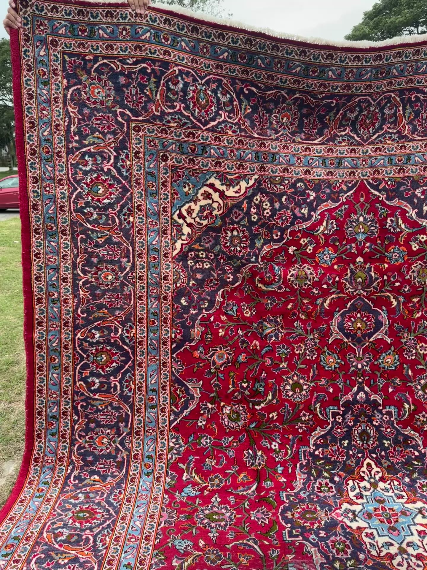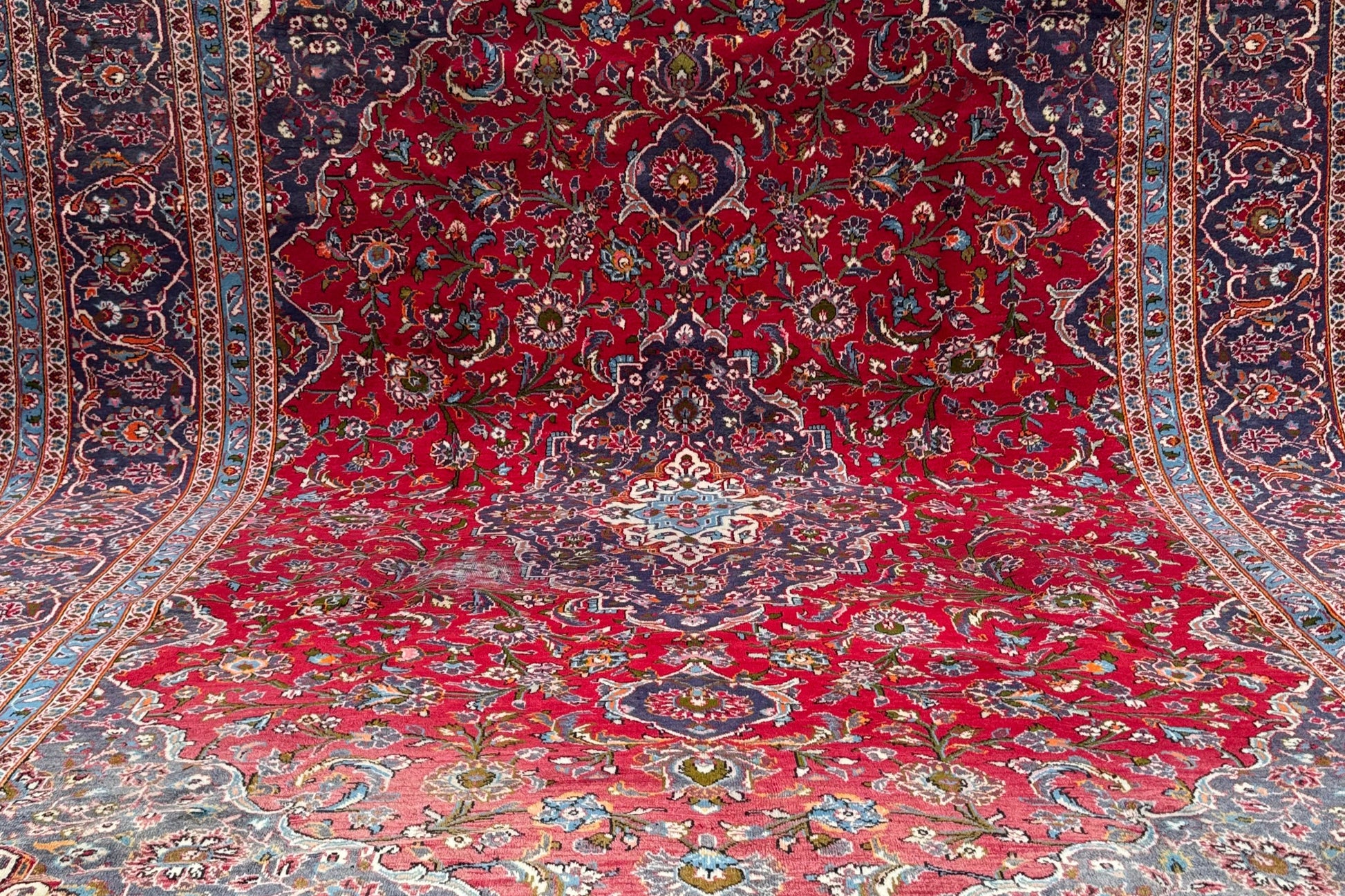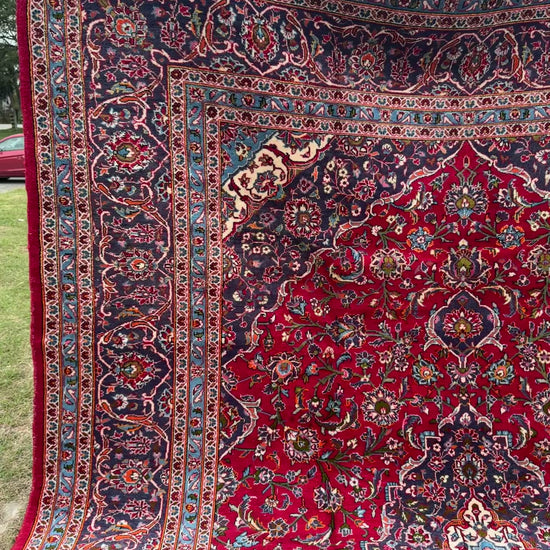Finally, our last piece from this March batch - a grand-sized Kashan rug, handwoven in central Iran. Kashan is renowned for its rich weaving history, with roots dating back to the 16th century. The city has long been a center for luxury rugs, famous for their high-quality wool and silk blends and intricate designs.