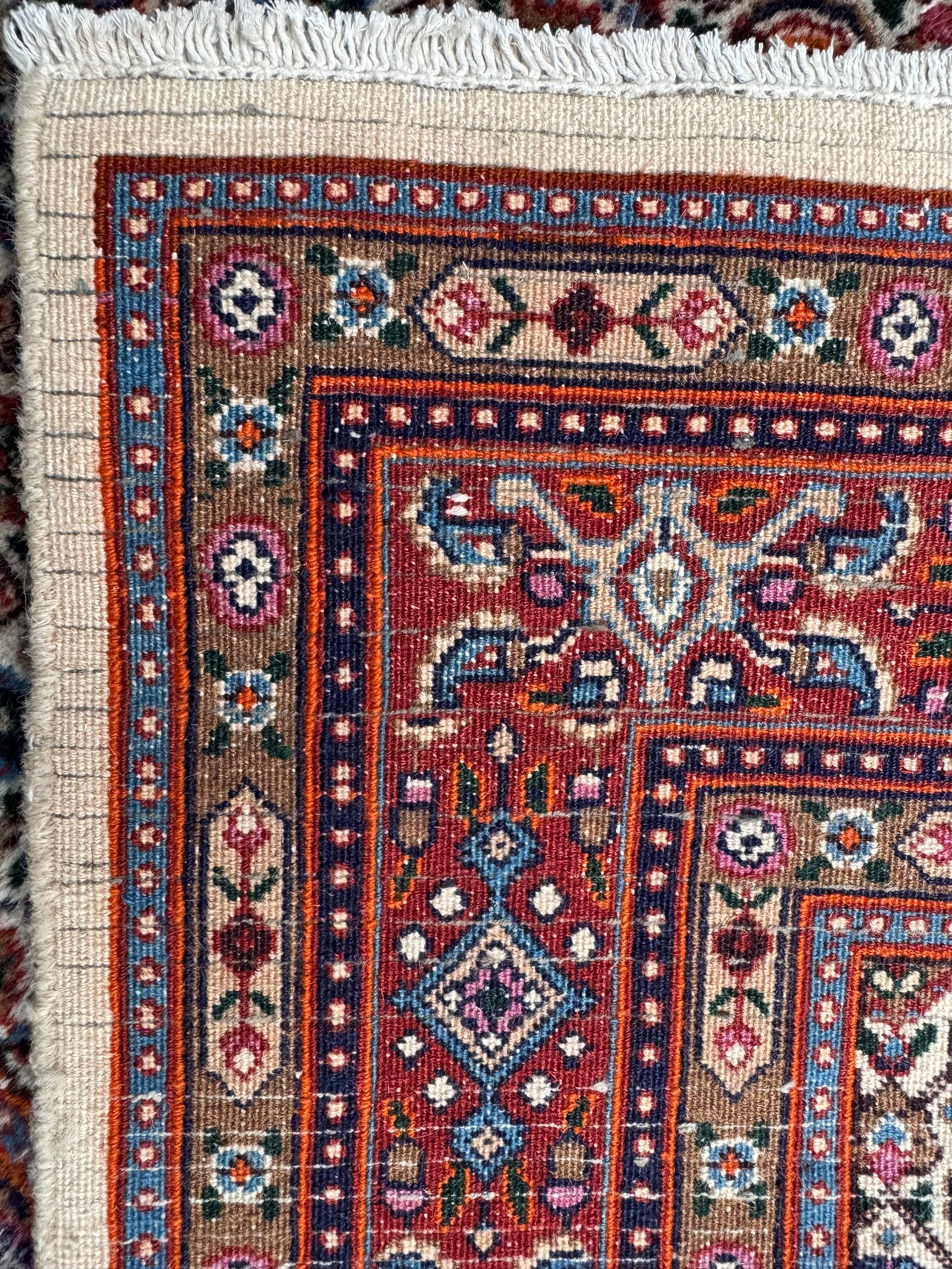 In good vintage condition with minor wears - thinning of the pile in some small areas, and side binding wear. Finely knotted, soft wool pile with intact fringes.