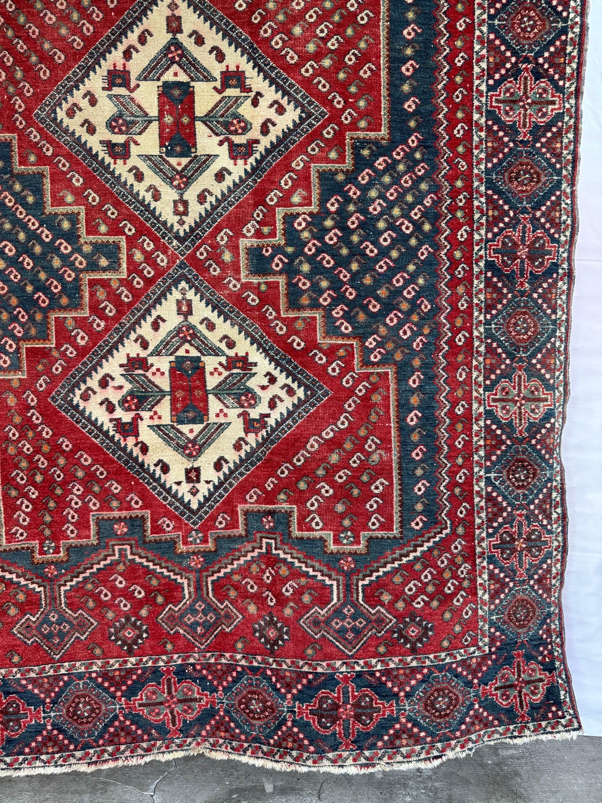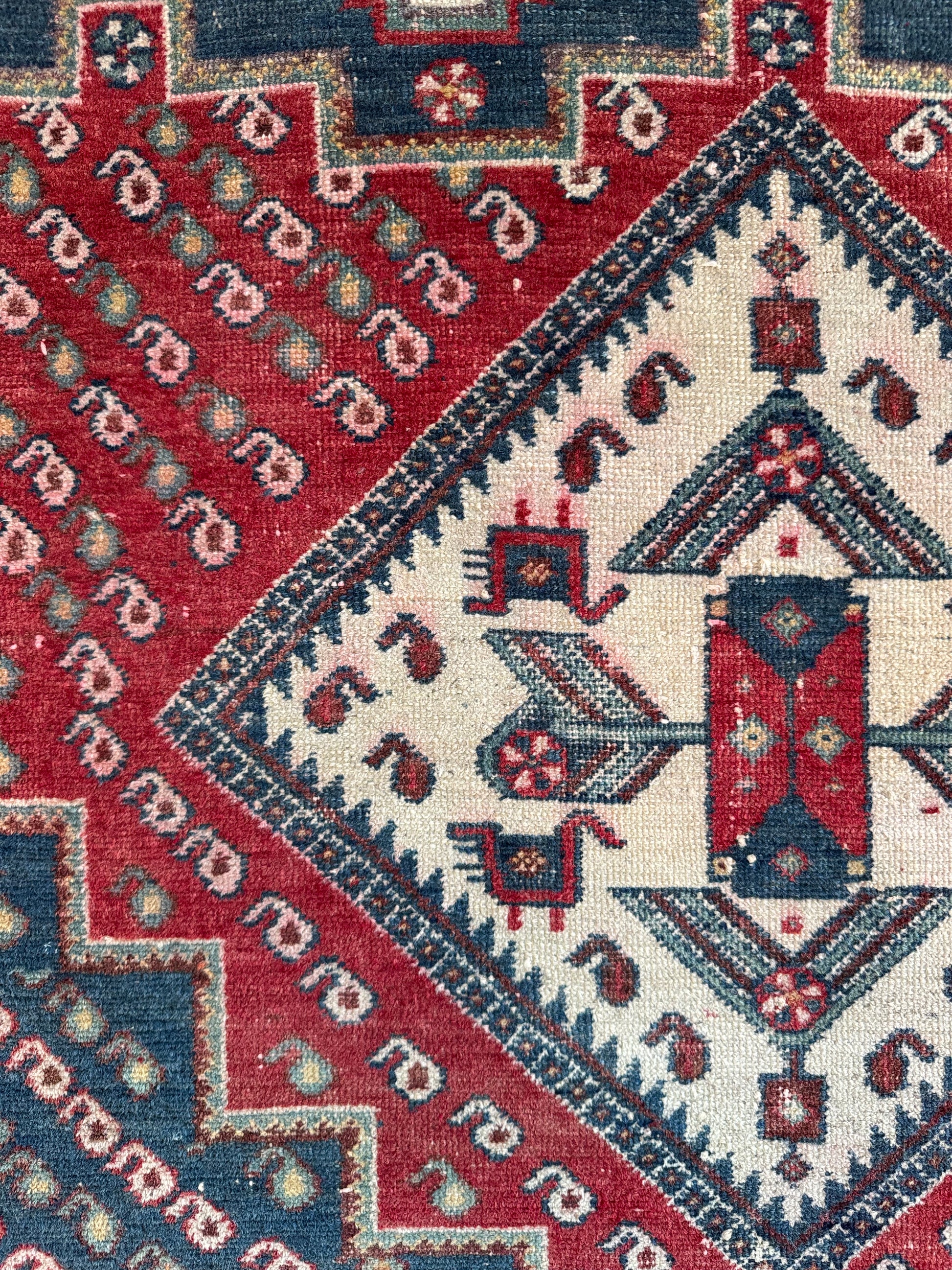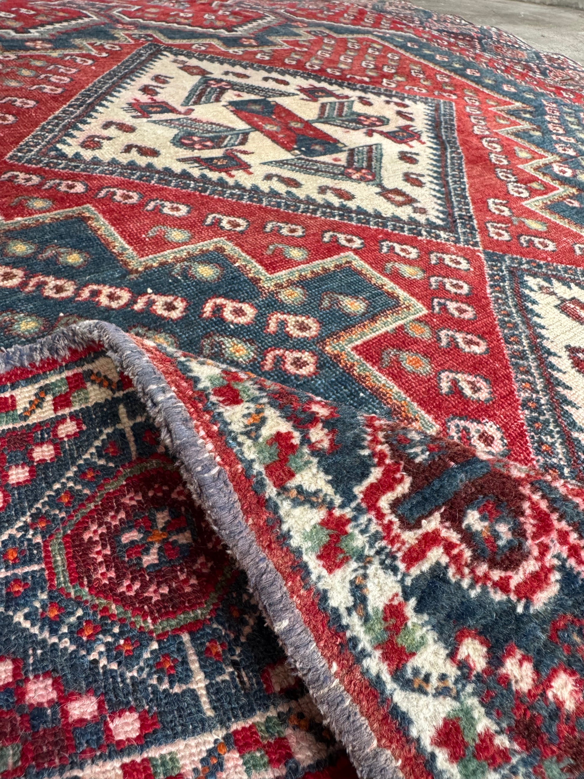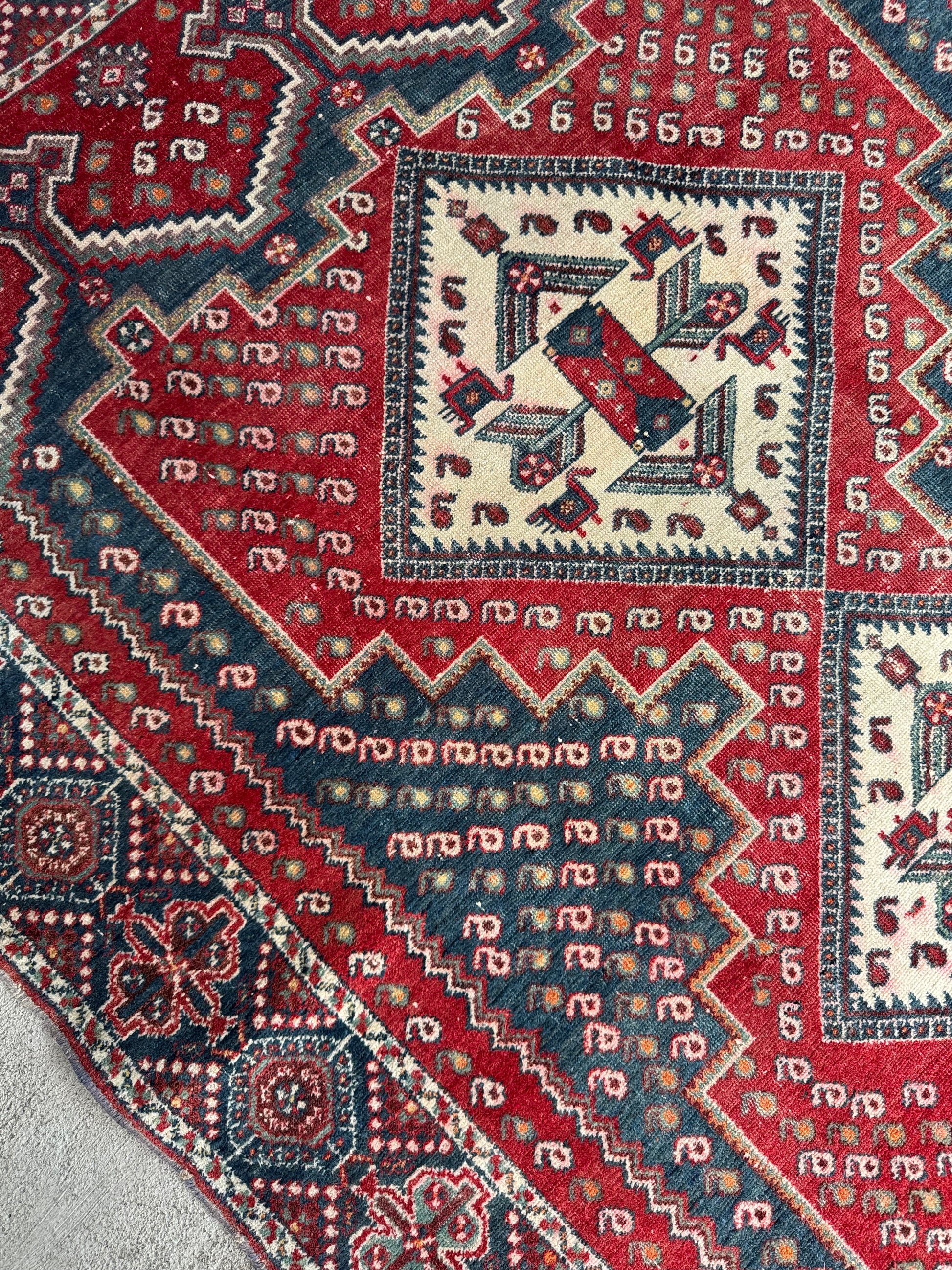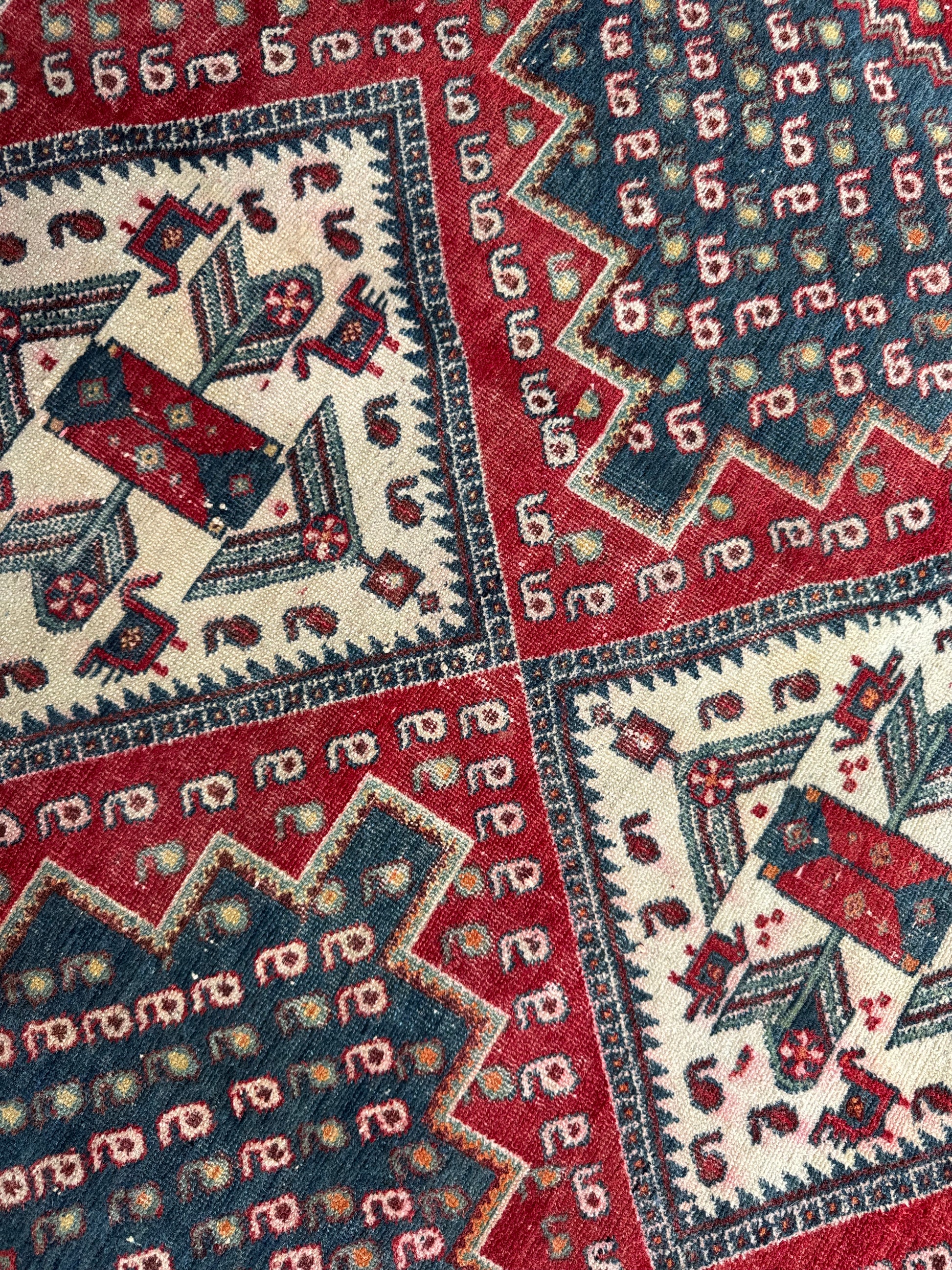 A vintage Shahrbabak rug, woven by the skilled hands of tribal artisans, carrying the rich legacy of southern Persia. Known for their bold geometric patterns and deep-rooted symbolism, Shahrbabak rugs are treasured for their durability and artistry.