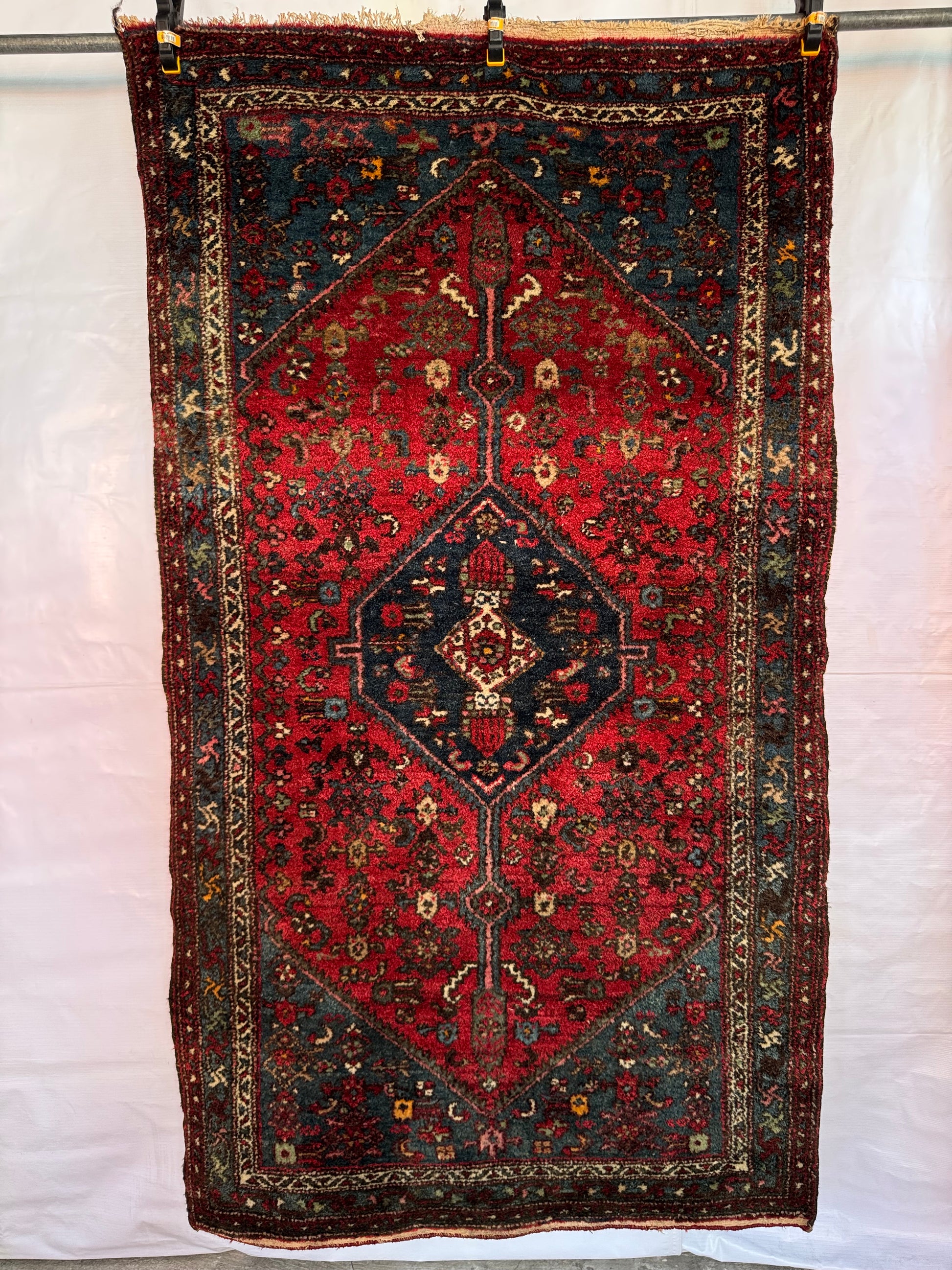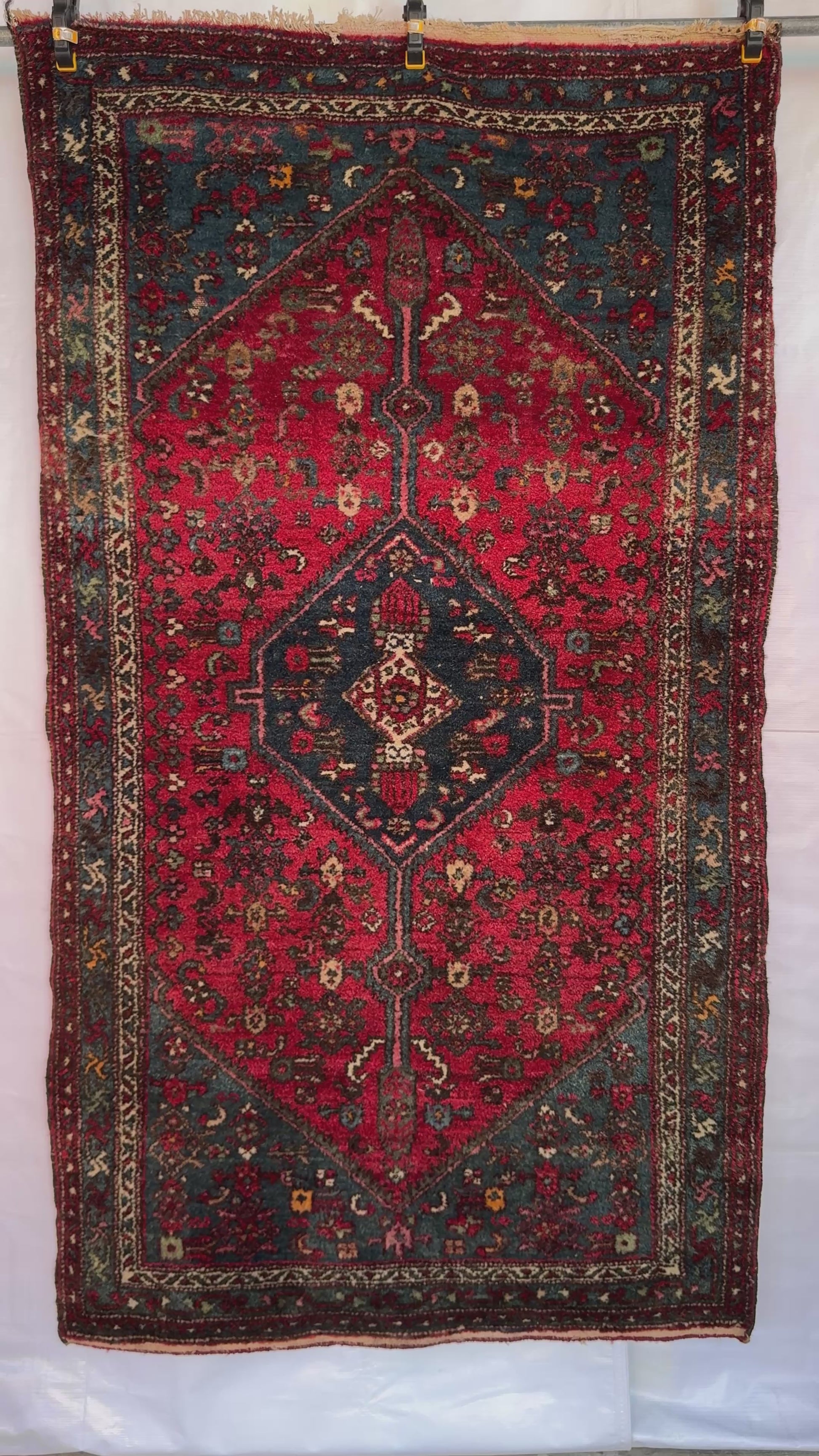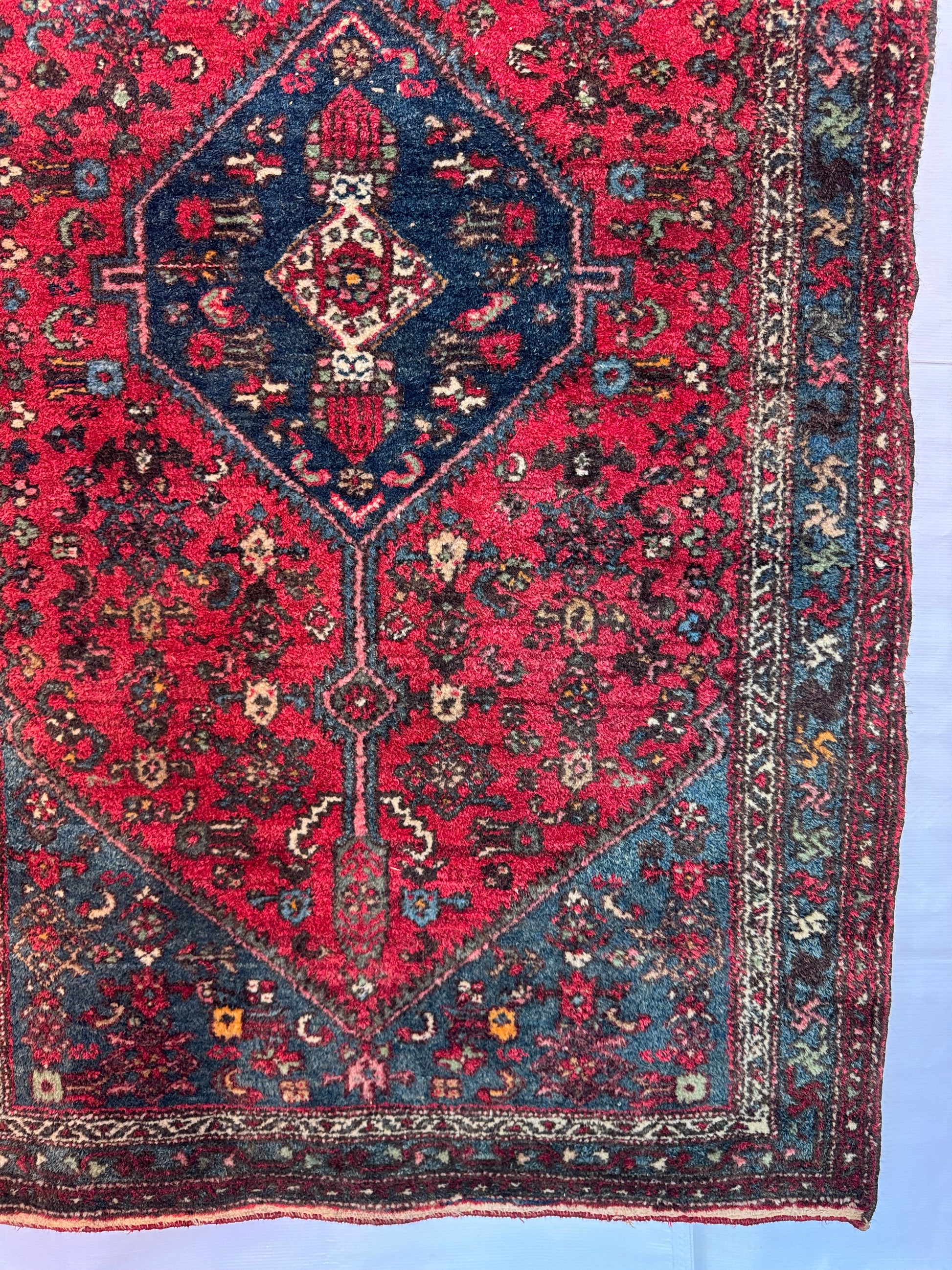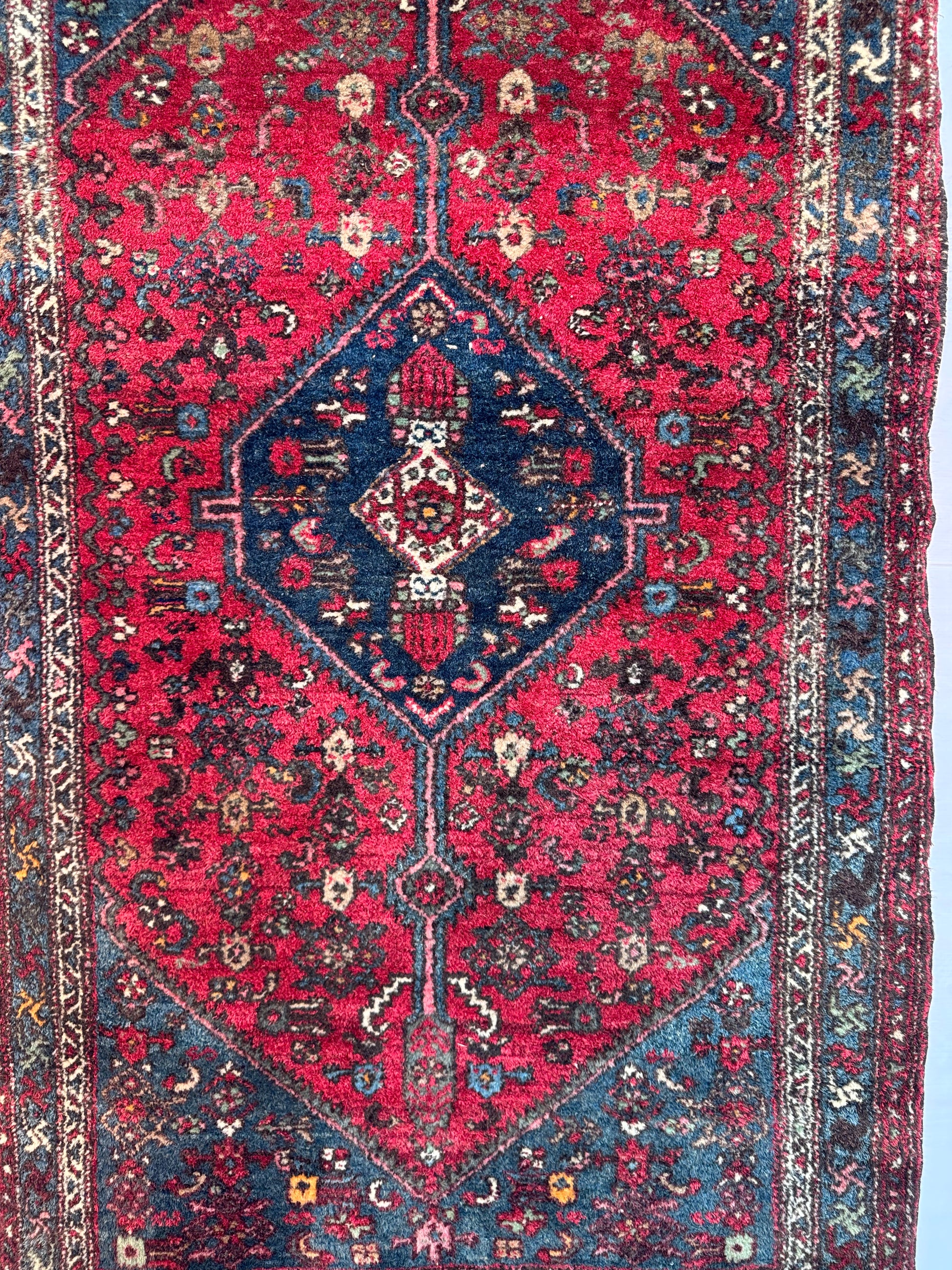 A vintage Zanjan rug, woven in the mountainous region of northwest Iran, known for its bold medallion designs and rich color palettes.